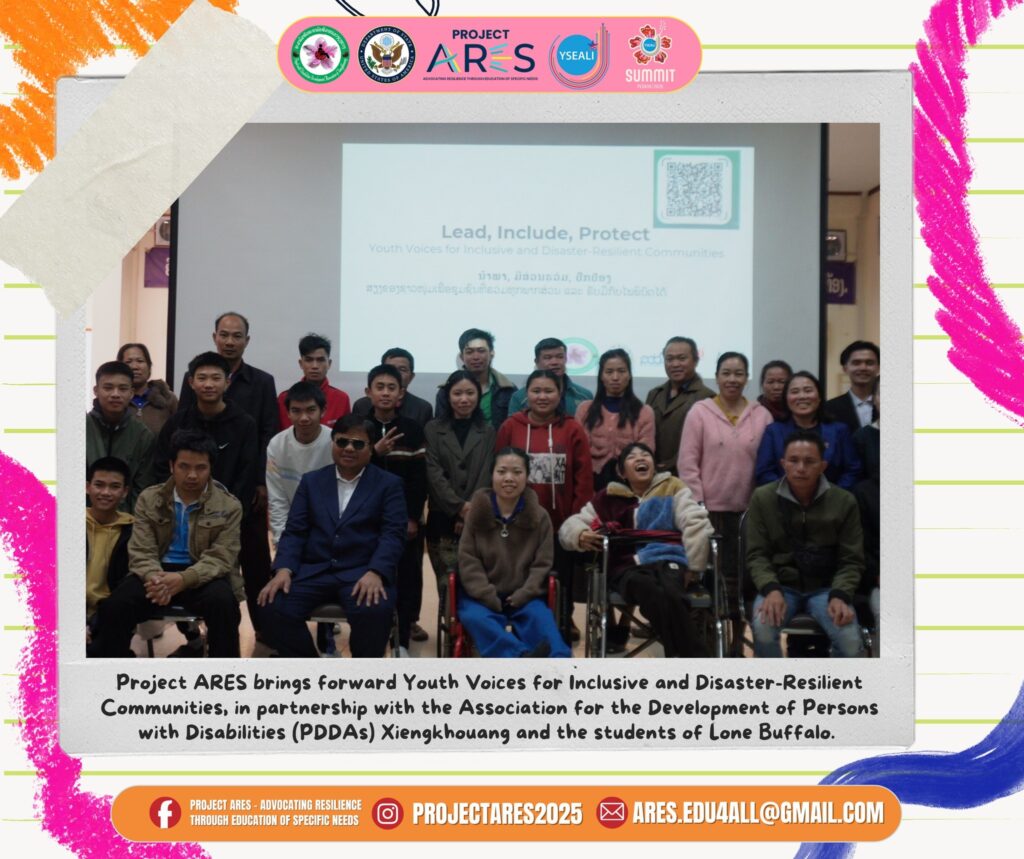 Project ARES is a youth-led initiative that builds community resilience in the Philippines, Indonesia, and Laos, empowering young people—including those with disabilities—to become leaders and DRRM experts who drive policy and behavioral change in their communities.